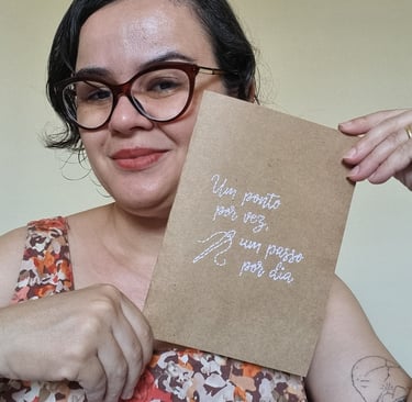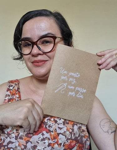 Mas pode me chamar de Moniquinha. Eu sou a pessoa por trás da marca Papéis Que Bordam. Sou professora de formação - Arte e Pedagogia, e artesã. Bordo no papel há 4 anos e tenho um curso completo de bordado no papel do zero, em que ensinei mais de 300 mulheres a bordar no papel., com leveza e afeto. Todos os riscos do meu curso foram produzidos por mim e a cada pack de riscos que faço, como esse que você está prestes a conquistar, eu faço sempre com muita atenção e afeto. Esse é um projeto único pois é mais que um pack, é um projeto guiado para termos juntas um ano inteiro incrível de bordado e inspiração.